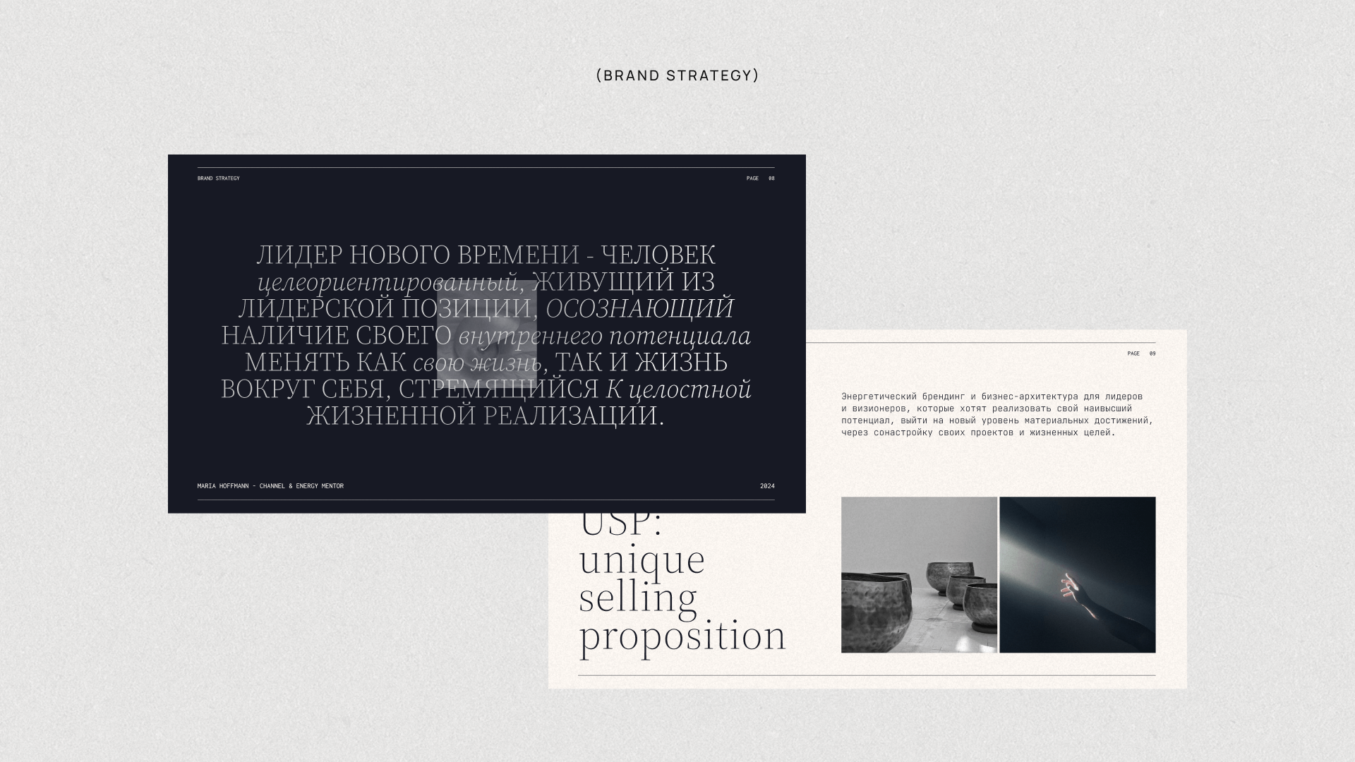 Мы интегрировали эти смыслы в визуальную айдентику, держа за основу баланс между элегантностью и строгостью, подчеркнув уникальность, самобытность и артистизм личности.