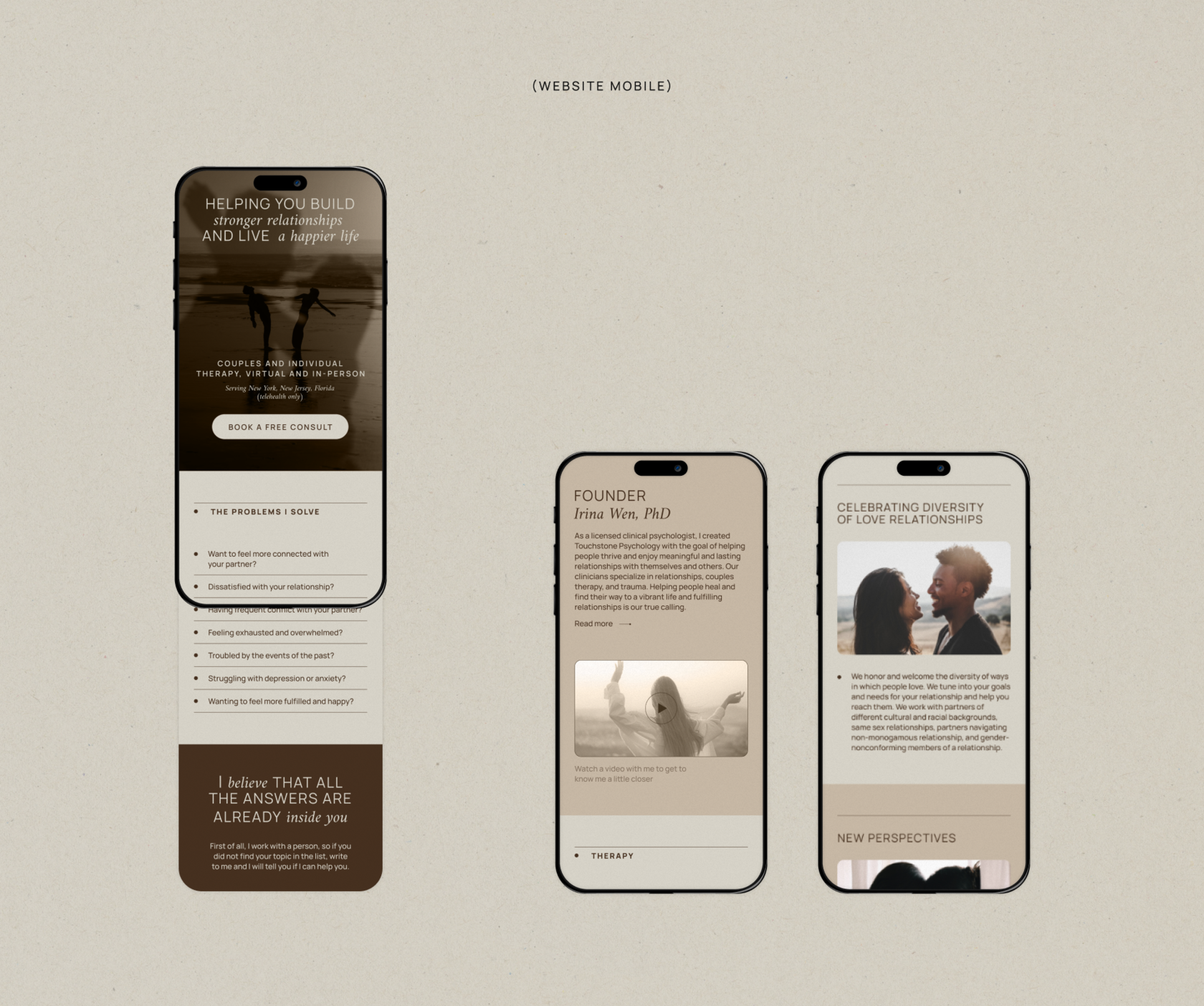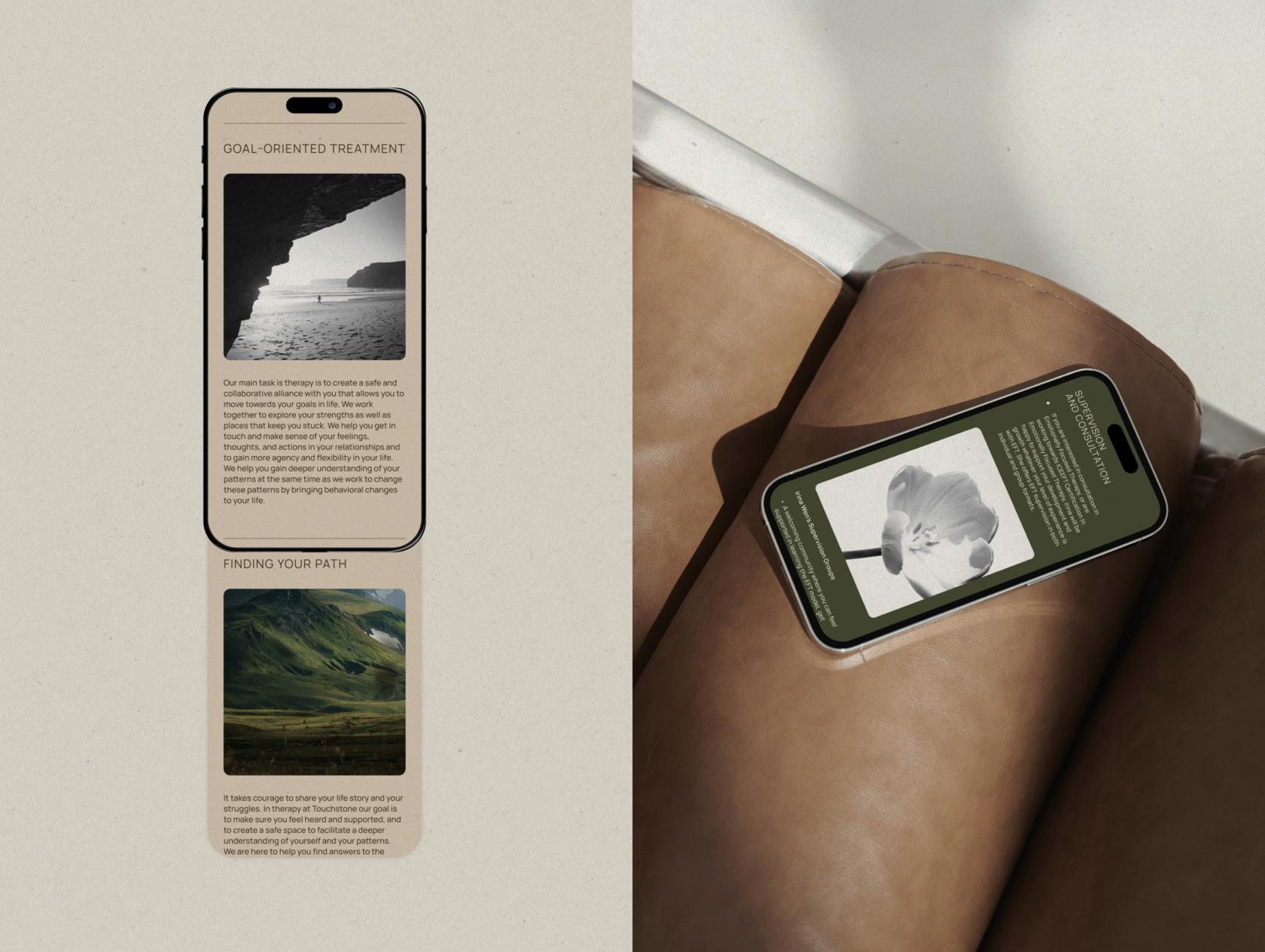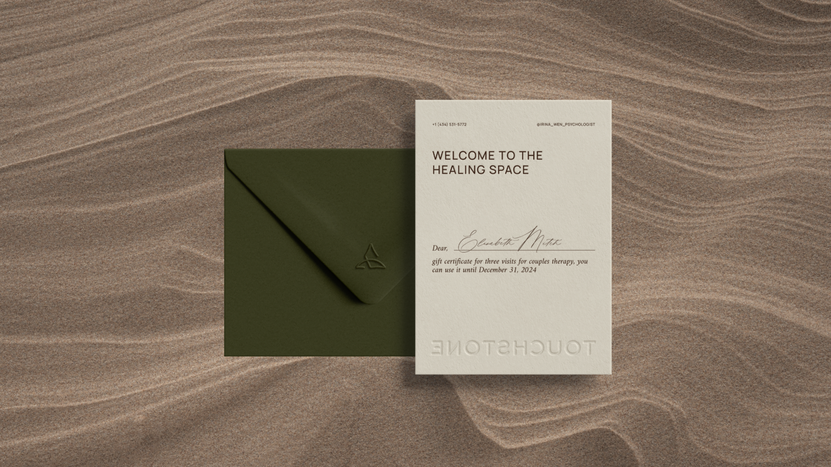 Working with symbols and resource elements from Irina, we integrated them into the visual identity. We have also embedded her core mission into the brand's DNA, which we have strengthened through metaphors referring to the dynamism of life, harmonious partnerships, and healing contact with the Earth.